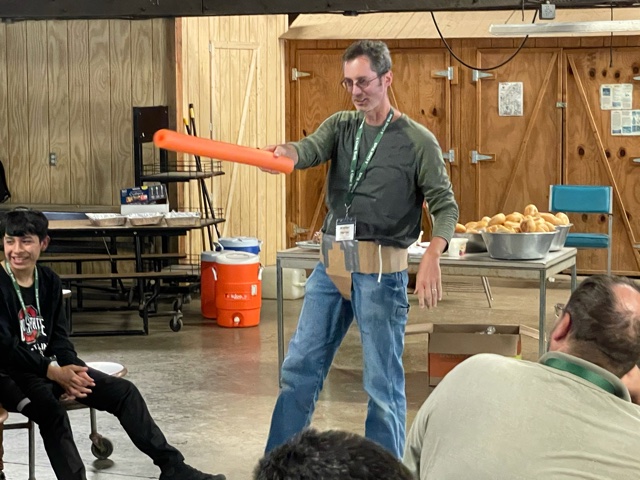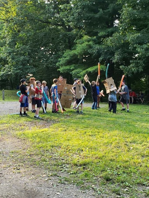 Activities at camp focused on teaching this same principle to the young men, that when they put on their spiritual armor the adversary is afraid of them and their mighty power. One of the activities the young men were able to participate in allowed them the opportunity to build their own armor out of cardboard and other supplies. Later that evening the young men armored up and with their “pool noodle” sword engaged in an all camp epic battle.