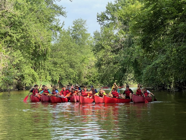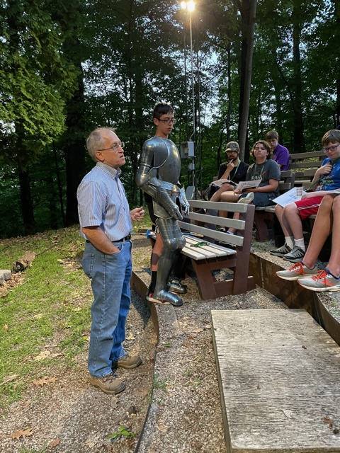 Other activities at camp included an amazing race challenge, service project to benefit the camp, chair soccer, classes that focused on scripture study techniques and scriptures that teach us how to armor up, archery, corn hole and tug of war. Friday we took an 8.5 mile canoe trip down the Tuscarawas River enjoying the beautiful weather and had lunch along the way. Each evening we gathered for a spiritual devotional that focused on the theme. One of those nights Brother Alred brought his real suit of armor and discussed with the young men each piece and its spiritual application. Another evening Brother Jared Varner engaged the youth in a discussion about fictional superheroes and how their specific powers are similar to the spiritual powers they have access to through living the gospel.