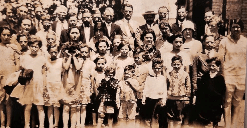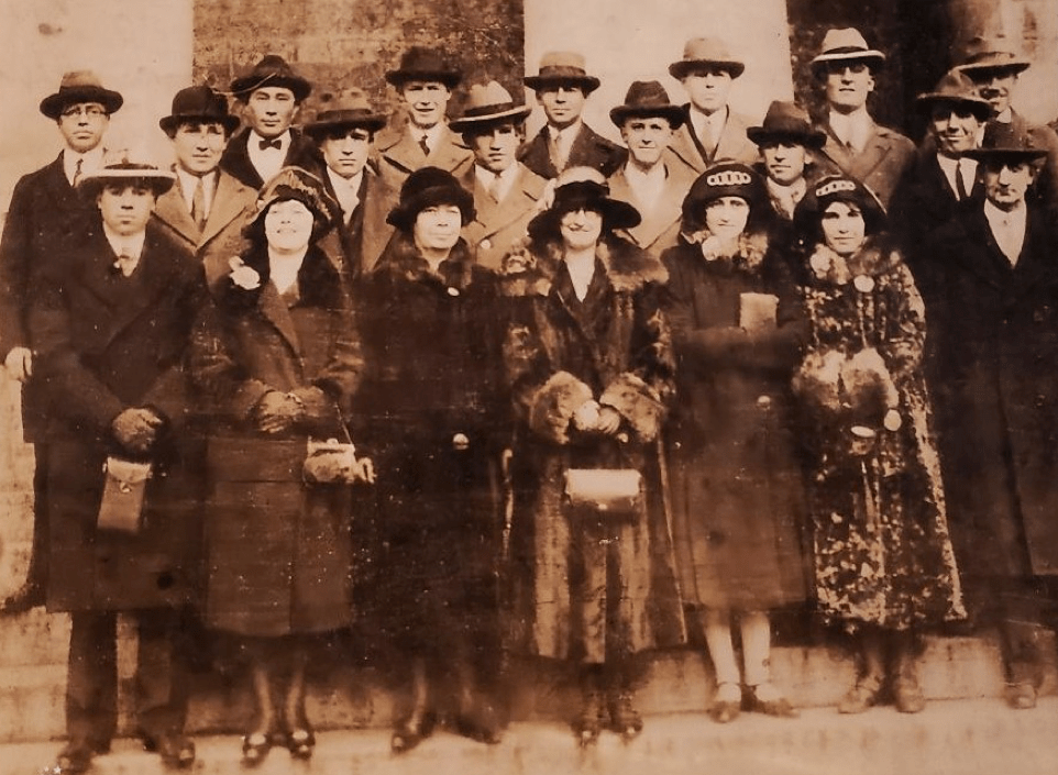 This is a picture of the Akron Branch about 1924. My mother is in the front row with her hands over her eyes. Behind her is her mother, and behind her are some of her brothers. Also in the picture are a couple of my cousins.