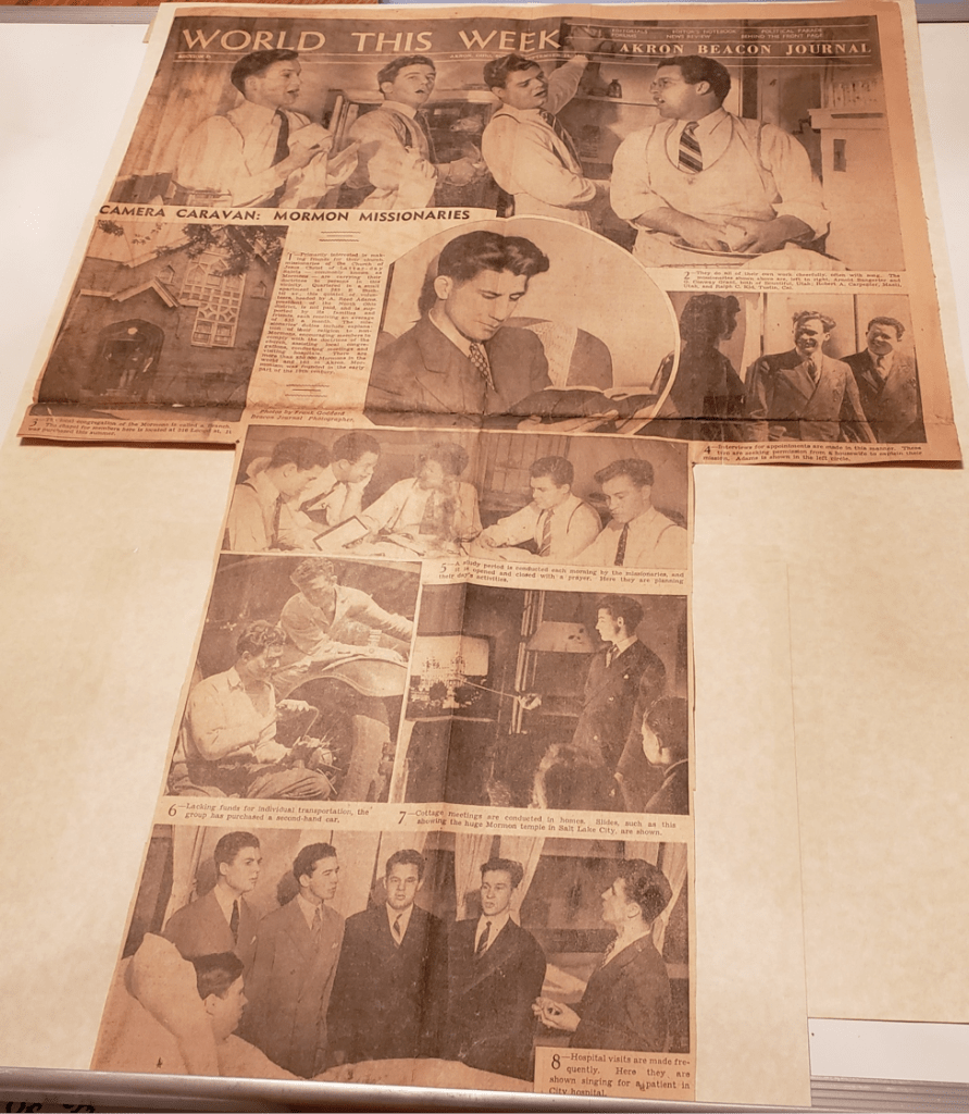 This article appeared in the Akron Beacon Journal on September 14, 1941. It was given to me at our ward conference on October 24, 2021 from Brother Trevor Most from the Canton Ward.